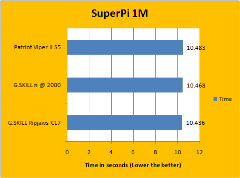 They are all within a couple hundredth of a second with each other -- but here is what lower latency memory counts the most. The Viper II Sector 5s, running at 8-8-8-24, came up behind, but not by much. All of them were within a hair of each other, as shown in our benchmark results graph above.