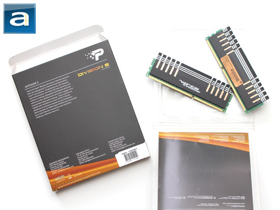 The heatspreader design of the Patriot Viper Xtreme Division 2 modules is symmetrical. This makes sense, because memory ICs reside on both sides of the PCB. Besides functional purposes, it also improves the look. The funny thing is Patriot's logo does not appear anywhere important on the modules -- the only time you will see it is at the top right corner on the sticker at the back. Instead, styled right in the center is the company's Viper Xtreme branding. If you take a closer look at the specifications label as aforementioned, you will find its model number (PXD38G1866ELK), speed (DDR3-1866), latencies (9-11-9-27), size (2x4GB kit), and voltage (1.65V). I think it is safe to assume one of the series of numbers at the back corresponds to the serial number, but everything else is quite standard.