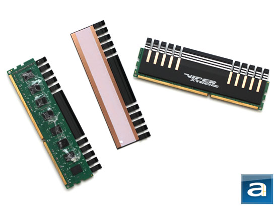 Patriot's Viper Xtreme Division 2 PC3-15000 2x4GB RAM -- which I'll refer to as 'Patriot Viper Xtreme' for short -- uses a medium to high profile, black colored aluminum heatspreader with copper plates sandwiched in between. We will disassemble it to take a closer look in just a moment. This means the heatsinks take up some room above the actual PCB due to the placement of cooling fins, and will have clearance issues with large heatsinks like the Noctua NH-D14 we have reviewed a while back. Aluminum is lightweight, and serves as a decent heat conductor; while copper is an excellent heat conductor, but very heavy. Whether you like to call it marketing gimmick or not, it is almost impossible nowadays to find performance memory without any form of a heatspreader attached, haha. They do undeniably serve a purpose in dissipating heat, but for most memory modules, unless run at a voltage significantly over design limits -- which you won't, special thanks to integrated memory controllers on Intel processors -- this feature is certainly not a requirement. But I will admit they look pretty cool in any windowed chassis.