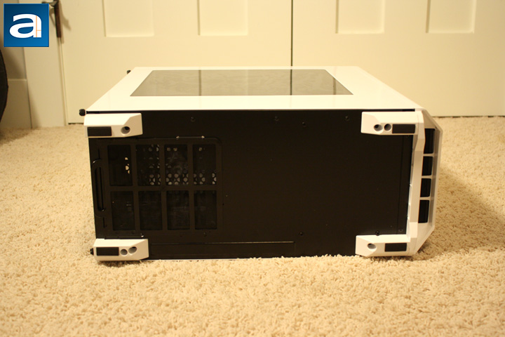 At the bottom of the case we find four big white feet. The feet allows for approximately 2 cm of breathing room, however this will not help if the computer is on carpet. As you can see in the photo above, the rest of the bottom is just flat and black in color, except for the power supply intake. There is another magnetic dust filter to ensure your power supply does not get clogged with too much dust. All in all, in this price range, I am very satisfied with the build quality of the Phanteks Eclipse P400. It is nice and sturdy due to the steel top, side, and front. The side panels fit nicely together, minimizing any gaps between the side panels and the rest of the case. All the edges are rounded, and a lot attention to detail was put in to ensure a satisfying exterior look. There were some small manufacturing quirks like misaligned 3.5mm jacks in our particular unit, but my guess is it will be fixed in production units.