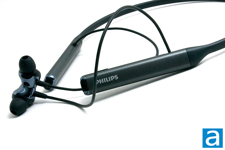 Taking off the earsleeves reveal its 13mm neodymium acoustic drivers rated at 20 Hz to 20 kHz frequency response over Bluetooth or 7 Hz to 40 kHz over a wired connection. The maximum output power is rated at 10 mW. Its 16 ohm impedance and 93 dB is fairly standard. Like many modern in-ear monitors, the drivers aim directly into your ear for a more direct and transparent sound reproduction characteristic. An added bonus of this design is that it will be easier to clean as well. The oval-shaped acoustic tube via the earsleeve assist the aim into the user’s ear canals, and since these earphones are designed for a close configuration, the Philips Wireless Neckband PN505 are made for both active and passive noise cancelling.