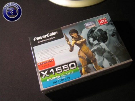 Inside the box filled with styrofoam packing peanuts is a retail package of PowerColor's X1550 graphics card. The PowerColor X1550 comes in five variants from this company; our unit is the PowerColor X1550 256/64 DDR2. Other models include PowerColor X1550 128/64 DDR2, PowerColor X1550 512MB DDR2, PowerColor X1550 256MB SCS, and PowerColor X1550 512MB SCS. The SCS stands for 'Silent Cooling System' (PowerColor's name for utilization of a passive cooler), while unless specified, the cards are all 128 bit. Our PowerColor X1550 256/64 means it has 256MB of onboard memory with a 64 bit bus width.
