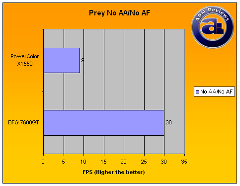 The number is 9 FPS to begin with; while our 7600GT starts off at 30 FPS with no AA and AF.