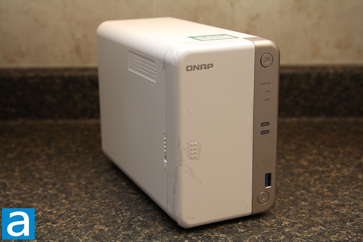 QNAP's logo is printed on the top left corner of the plastic cover; whereas a silver surface occupies a slim vertical portion on the right. An array of LEDs under the power button indicates system status, LAN status, and USB status, respectively. The system status LED will turn off when the hard disks are on standby. Each independent hard drive has its own status LED as well. The drive status LEDs flashes when there is disk activity and remains on when it is idling. It turns red if the system determines the corresponding hard drive is in trouble. Extensive documentation on the behavior of the indicator LEDs can be found on the company's website. Below the array of LEDs is a USB 3.0 Type-A port and a one-touch copy button. Unfortunately, there is no front panel display, but it is excusable since this a budget product. With its excellent design, there is absolutely no learning curve for users who are familiar with using QNAP NAS systems -- it is all plug and play.