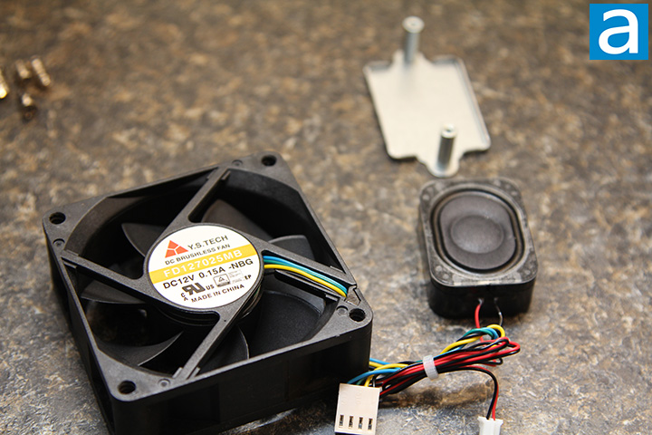 The SATA backplane ports are powered by a controller native to the Intel system on a chip. A built-in speaker gives you voice announcements on system status. Meanwhile, the rear exhaust fan is an Y.S. Tech FD127025MB, which is a 70mm dual ball bearing fan specified at 0.15A for a maximum of speed of 4000 rpm. The rated airflow is 33.1 CFM and 5.0 mm-H2O static pressure at 34.5 dB of noise. This is similar to the one found in the QNAP TS-253B.