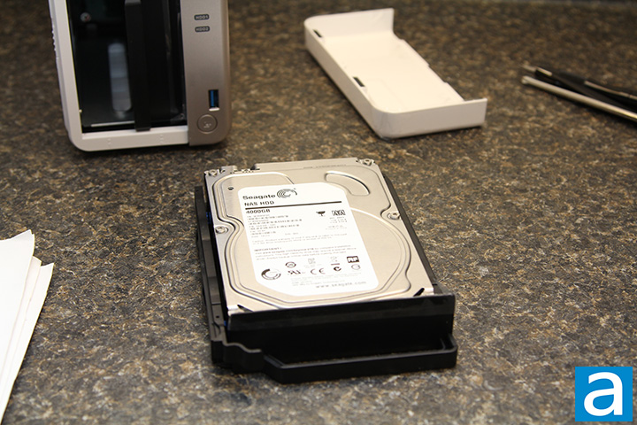 Installing hard drives is a straightforward procedure. Since this is a SATA system, all hard drives are hot swappable. Removing the hard drive tray is very simple -- just unlatch the lock at the top and pull it out. The disk trays are not labeled. Functionally, the installation order does not matter in a RAID system, but I think being able to discern which disk is which by a physical label can be very useful. Obviously, you can grab a permanent marker and mark them by hand, but labeling them "Disk 1" and "Disk 2" from the factory is probably not too hard. Each tray can accommodate one 2.5" or 3.5" drive; where the latter can be installed tool-free. The latest trays are made out of plastic instead of metal to prevent any electrical short problems and are not compatible with previous generation QNAP devices. The TS-251B supports single disk, RAID 0 (Disk Striping), RAID 1 (Disk Mirroring), and JBOD (Linear Disk Volume). If you want to encrypt your data, you have the option to enable its AES 256-bit folder-based encryption.