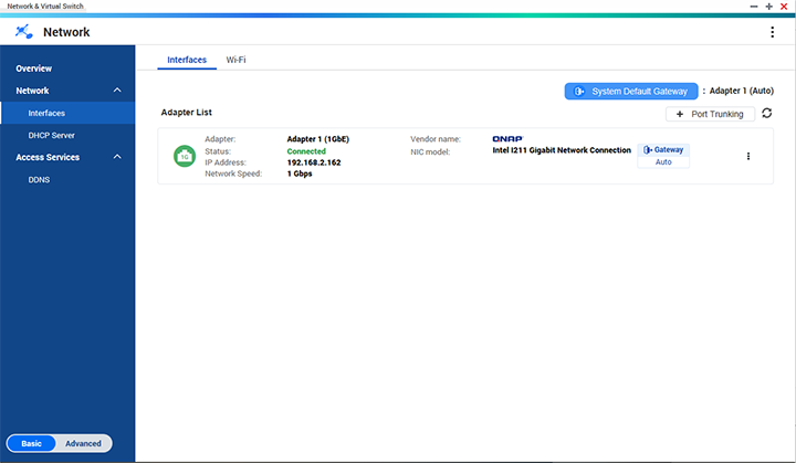 The Network and Virtual Switch screen links to a separate subsection in a new window as shown above. Here, you can do stuff like play with virtual switches VLAN or enable Jumbo Frames for each network interface. By default, there is only one, but if you have additional adapters installed, this is the place to go.