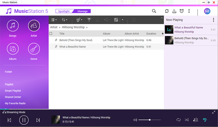 The Music Station is a built-in music player with full-fledged library functions and a clean user interface. Our screenshot above demonstrates this functionality; it is almost like running a desktop media player straight from your computer. Music Station supports streaming from other UPnP devices on your network as well as internet radio support. You can even use it to share some music with your friends; just watch out for the copyright police.