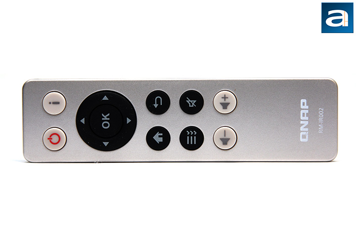 A RM-IR002 remote control is included with the QNAP TS-453A. It is powered by a single included CR2032 battery. I would have much preferred AAA batteries instead, since they are more readily available. That aside, if you are looking to place your network attached storage system in your living room, and use it as a media center PC, this will be an absolutely invaluable accessory. The remote control is very compact, and extremely simple in nature. As you can see in our photo above, there is a power button at the top, with an Info button next to it. A D-pad with an OK button in the middle is present to simplify navigation tasks. Below that, from left to right and top to bottom, we have Home, Back, Options, Mute, Volume Down, and Volume Up. All of them are aptly labeled with its corresponding symbol, which should be quite self-explanatory. Overall, you will not find a remote control much simpler, and I am happy it is quite intuitively designed.