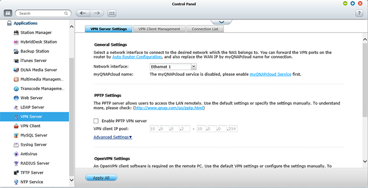 Other applications of interest include Syslog, RADIUS, and TFTP servers; along with a built in antivirus for an extra touch on security. The RADIUS server is an integrated version of the open source FreeRADIUS software; while its antivirus feature runs off ClamAV. Our screenshot above shows the VPN service configuration screen on our NAS. The Transcode Management application allows you to transcode videos on your QNAP TVS-463, but you are probably better off doing it on your desktop with more processing horsepower. This is not to mention the system cannot handle 4K videos.