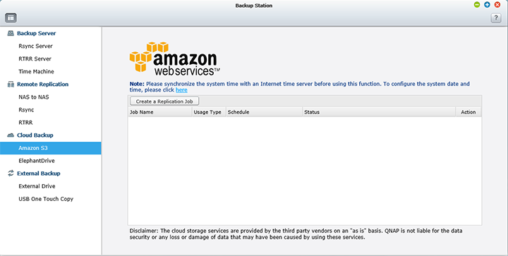 The Backup Station window has four subsections. These include Backup Server, Remote Replication. Cloud Backup, and External Backup. NAS to NAS lets you configure your QNAP TVS-463 to copy data to a remote server of the same NAS series, and backup from remote server to the local server as well. You can also set its port number, and allow/disallow remote Rsync server to back up data to the local system. RTRR can be enabled, as its name suggests, for Real Time Remote Replication. Cloud Backup provides support for Amazon S3 and ElephantDrive, where you can upload data from your NAS to the respective services, and vice versa.