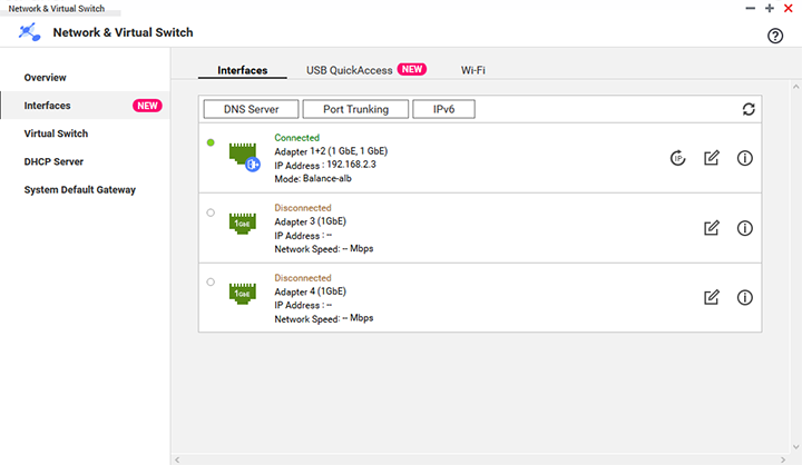 The Network and Virtual Switch screen links to a separate subsection in a new window as shown above. Here, you can do stuff like play with virtual switches for network traffic distribution, enable Jumbo Frames and Network Port Trunking (My favorite is set on Balance-alb mode with two Gigabit LAN adapters attached to my Gigabit switch). In Network Access, Service Binding allows the system administrator to selectively enable services based on the client connection interface. This is especially beneficial for security and network bandwidth optimization.