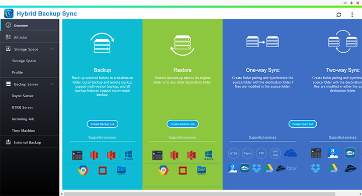 The Hybrid Backup Sync window has four subsections. These include All Jobs, Storage Space, Backup Server, and External Backup. Here, you can configure stuff like having your QNAP TVS-473 to copy data to a remote server of the same NAS series, and backup from remote server to the local server as well. You can also set its port number and allow/disallow remote Rsync server to back up data to the local system. RTRR can be enabled, as its name suggests, for Real Time Remote Replication. Cloud Backup provides support for Amazon S3, where you can upload data from your NAS to the Amazon S3 and vice versa.
