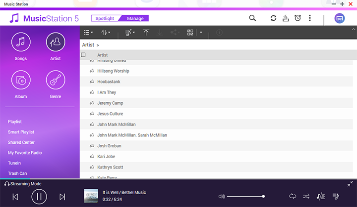 The Music Station is a built-in music player with full-fledged library functions and a clean user interface. Our screenshot above demonstrates this functionality; it is almost like running a desktop media player straight from your computer. Music Station supports streaming from other UPnP devices on your network as well as internet radio support. You can even use it to share some music with your friends; just watch out for the copyright police.