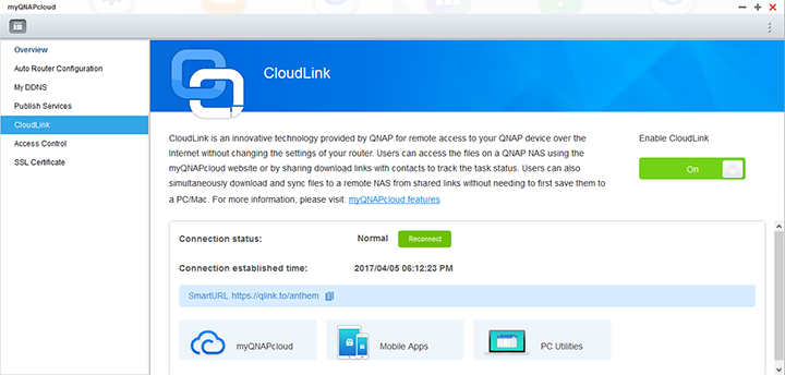 For users with UPnP routers, port forwarding setup is no more than a couple of clicks away. New to the system is CloudLink, a remote access service provided by QNAP. You can connect to your device and access all your files using the myQNAPcloud website, all without the need to configure port settings on your router. Furthermore, it allows access from QNAP applications directly to your network attached storage system. For enhanced security, you can purchase an assign an SSL certificate to your NAS.