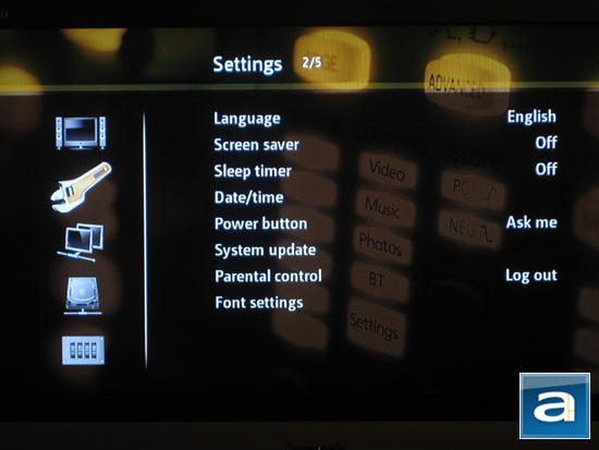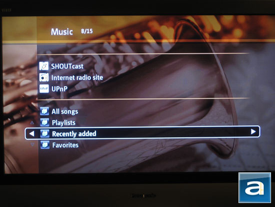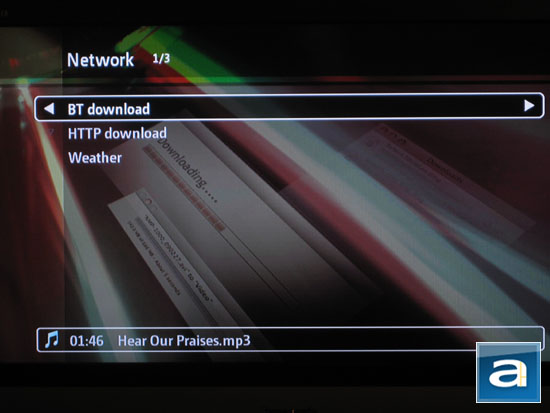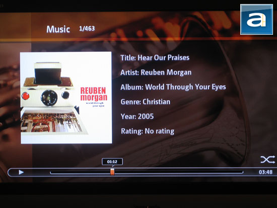 As promised earlier on in this review, information on the song currently playing is displayed at the bottom of the screen if you are out of the Now Playing screen, as shown in our photo above. The bar does not interfere with other onscreen items, but again the weird thing is that you do not have the option to pause or skip songs, despite having hardware buttons right on your remote control. The bar shows the play duration and name of the file. For some reason, the file name along with its extension is displayed rather than the appropriate ID3 tags. I hope this can be fixed in the upcoming firmware release as well.