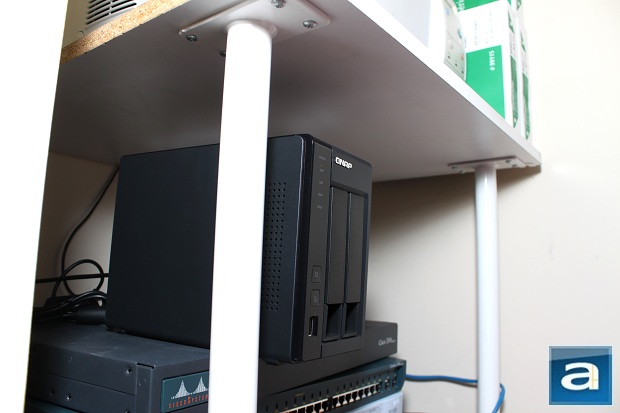 For our tests, the QNAP TS-219P II is placed in our networking room in the basement. Our test station is located on the same local area network as the NAS to simulate real world performance in a centralized operating environment. The TS-219P II is connected to a NETGEAR GS-108 Gigabit switch via the provided CAT5e cable.
