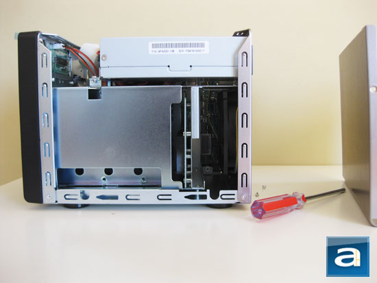 Removing its shell is pretty simple -- simply remove three screws, and slide it out. Again, I don't appreciate the warranty seal that's placed so the user will void the warranty if it is opened. While there's nothing the user can do in particular to service its internal components, you will have no choice but to void your warranty if you need to open the unit just to clean out some dust off its fan. Or anything similar, for that matter!