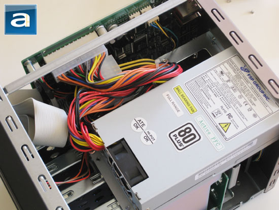 I've read reports on the QNAP TS-439 Pro featuring a Seasonic SS-259SU 250W power supply. When I opened my particular unit, I found a Fortron Source FSP220-60LE 250W power supply. Fortron is both a large power supply OEM, and self-branded manufacturer under the same brand. The Fortron FSP220-60LE is rated at 250W @ 25c and 220W @ 50c. It is technically a 220W power supply, which Fortron specifies as well -- you can even see this in their model number -- but QNAP prefers to advertise it as a 250W power supply under their own specifications. Realistically, no power supplies can operate at an internal temperature of 25c under normal working environments, therefore 220W is a much more accurate rating. It can output up to 14.0A @ +3.3V, 16.0A @ +5V, 16.0A @ +12V1, and 10.0A @ +12V2 with two +12V rails. The Fortron FSP220-60LE features Active PFC, and is a 80 Plus certified power supply.