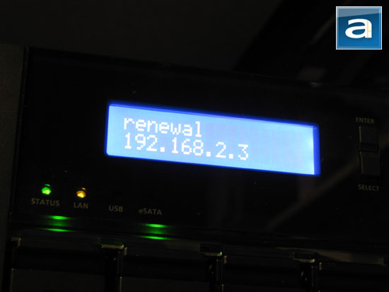 Setting up is much easier than before. Instead of installing QNAP Finder, which you would really use once and then uninstall, now with its LCD screen permits the user to quickly configure their QNAP TS-439 Pro for the very first time -- all without additional software. Once it is done, you can access the device using its web configuration interface to do the rest. That's about it! The LCD screen does a great job and showing system information and status; once it's on, it will show the server name and IP address, as shown above. A secondary screen displays the model number (TS-439 Pro) and firmware version. Holding the "Enter" button for two seconds reveals a menu for various configuration and maintenance tasks, as well as displays some vital information such as system temperature. The screen will turn off automatically if it's not being used.