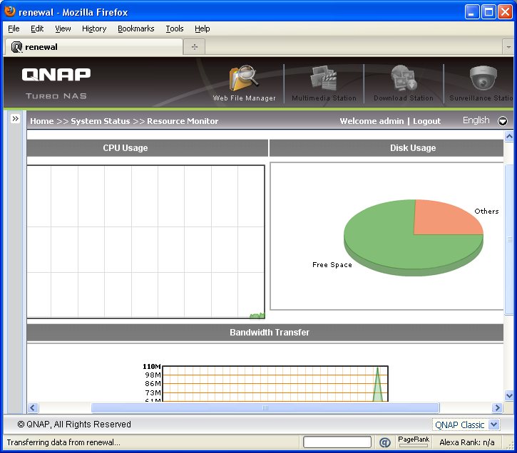 Our device came shipped with an older version of QNAP's software. After a 68.6MB download from QNAP's website, we flashed our QNAP TS-439 Pro to their latest firmware, which features the company's excellent new AJAX based web configuration user interface.
