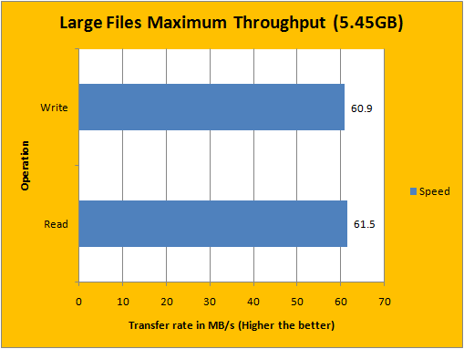 There are two hard drives installed in our QNAP TS-439 Pro: A Seagate Barracuda 7200.10 320GB and Western Digital Caviar KS 250GB, configured in independent single disks, and formatted in the EXT4 file system. All performance tests are measured from the Seagate Barracuda 7200.10 320GB drive. To read means to copy files from the network attached storage system to the test system, and to write means to copy files from the test system to the network attached storage system.