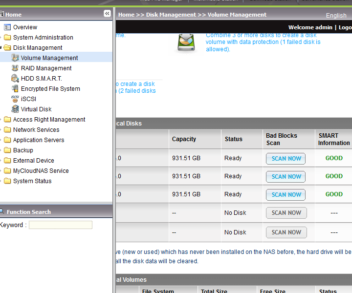Under RAID Management, you will have options to play around with your RAID array -- such as expanding capacity, adding a hard drive, migrate, as well as configuring a spare drive.