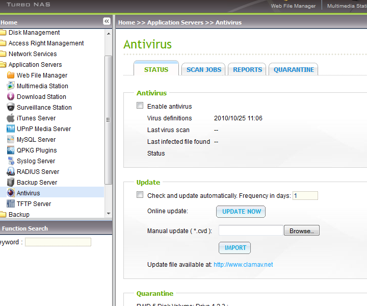 New to the latest firmware update include Syslog, RADIUS, and TFTP servers; along with a built in antivirus for an extra touch on security. The RADIUS server is an integrated version of the open source FreeRADIUS software; while its antivirus feature runs off ClamAV, as shown in our screenshot above.
