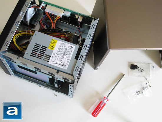 Removing its shell is pretty simple -- simply remove three screws, and slide it out. Again, I don't appreciate the warranty seal that's placed so the user will void the warranty if it is opened. While there's nothing the user can do in particular to service its internal components, you will have no choice but to void your warranty if you need to open the unit just to clean out some dust off its fan. Or anything similar, for that matter!