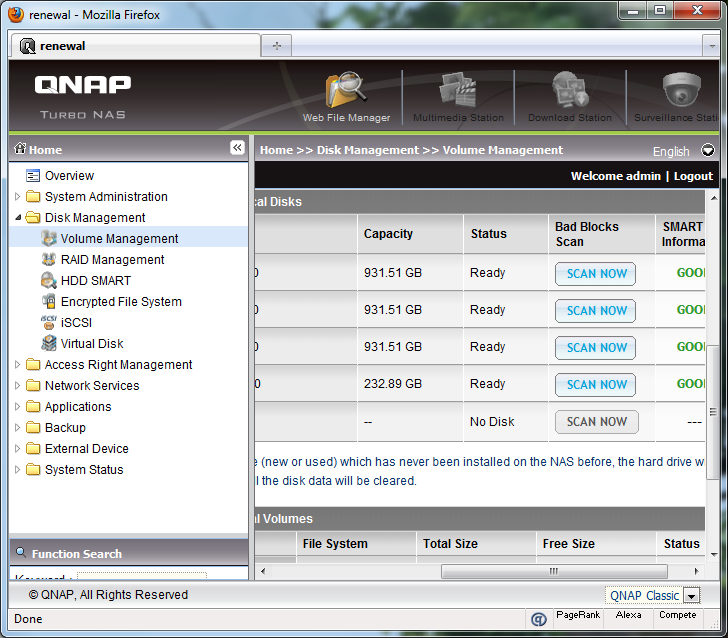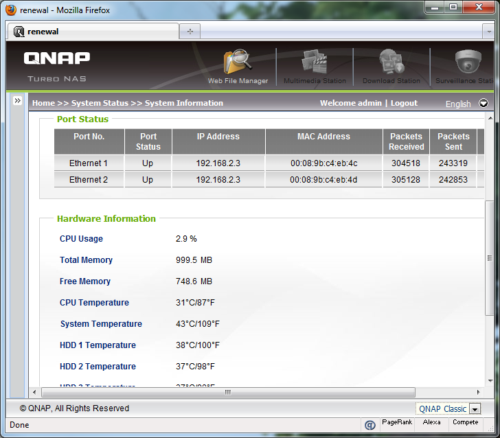 Following the designation of my file server names, the QNAP TS-559 Pro+ takes over as the main network attached storage system here at APH Networks. Therefore, it retains the name "Renewal"; used since 2007 -- and the fourth device to carry this name.