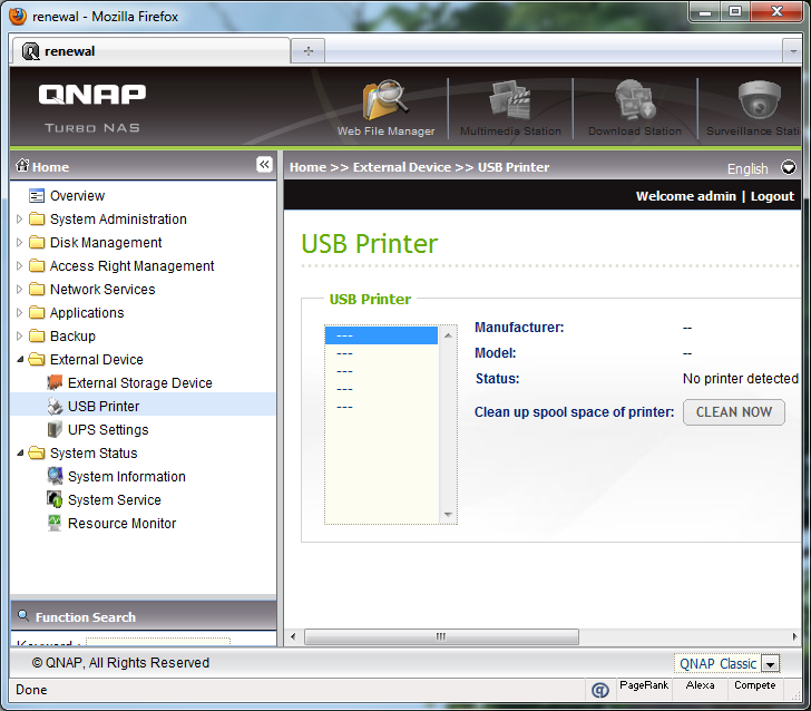 Under External Device, you can configure your NAS to work with, well, external devices -- including management of an external disk drive, USB printer, and connected UPS. The QNAP TS-559 Pro+ has a print server function, and the USB printer configuration screen is shown in the image above. Of course, I have no printer connected at the time of taking that screenshot haha. Other than that, the final screen in this section is the UPS settings, which is quite self explanatory in its own context.