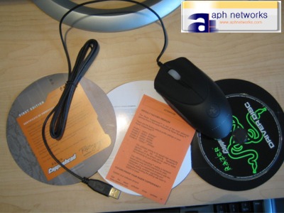 Here's a few background notes before we start the review. For one thing, we recieved the review product over a week ago. Unfortunately, Fedex crushed the package and broke the Copperhead's right mouse button (And cracked the driver CD, literally). It was very nice of Razer to send me a brand new replacement unit. Another thing is that this review was originally planned to compare the Copperhead directly against the Logitech G5. Since the G5 hasn't arrived yet, I'll have to write this one first. [EDIT: G5 has arrived. Review here] By the way, if you look closely at the above photo, UPS is used again! I think I am starting to love UPS...