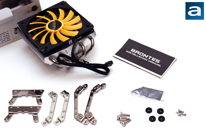 The retail packaging is nicely and tightly packed, with sufficient padding to ensure no damage is done to the Reeven Brontes during transportation. Inside we find the heatsink, which is very small, a little box containing all the parts for installation, and an instruction booklet. Something I have not seen before, but is done to save some money, is a plastic bag of thermal paste instead of the more conventional plastic syringe. However, let us take a closer look at the unit itself now.