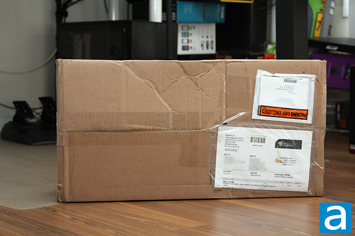 Today's review unit of the ROCCAT Kone AIMO arrived from ROCCAT's offices in Cerritos, California. Traveling to us with FedEx and their ground service, this box arrived in average condition. The brown corrugated cardboard box did have several dents and showed signs of traveling fatigue, but thankfully it was intact and unopened. Along with the Kone AIMO, we also received the Horde AIMO, which my colleague Ben Joubert looked at several weeks ago. Otherwise, there was nothing else in the box.
