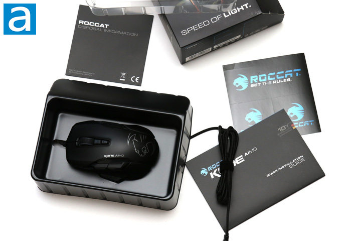 On an aside, I normally do not care much about the format of the specifications from the website, but the inconsistency and seemingly random case changing has made it hard to ignore. Moving on, inside the box we get similar goodies we have seen from other ROCCAT devices. Obviously, we have the mouse in question, the Kone AIMO, held in a plastic shell. We also have quite a few pieces of documentation, outlining the installation instructions and disposal information. Finally, ROCCAT has provided with some of their stickers, which look pretty nice. We have covered in the past that ROCCAT has a decent presence in the gaming community. It is a bit sad to hear Team ROCCAT is no longer part of League of Legends, but hopefully we will see more in the future.