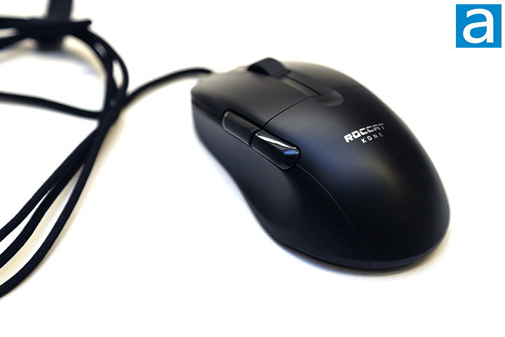 ROCCAT describes this mouse as an "ergonomic performance gaming mouse". Maybe this is a German-style understatement, because the Kone Pro is quite a bit more than that. The Kone Pro is an asymmetrical mouse for right-handed users. This means the shape of the shell is higher on the left than the right plus a thumb grip. Meanwhile, its shell surface material is composed of a thin, smooth, black plastic. Note the Kone Pro is also available in white. ROCCAT's logo and Kone branding is printed in silver in the middle of the shell. Beneath the shell, which the company brands as the Bionic Shell, is a honeycomb structure that makes the mouse so lightweight. Because the plastic shell is so thin, the mouse buttons have LEDs underneath it that shines through as a translucent surface. The sides are slightly textured with parallel lines running from the front to the back, which provides some visual contrast. I found the textured sides to be reasonably grippy during use.
