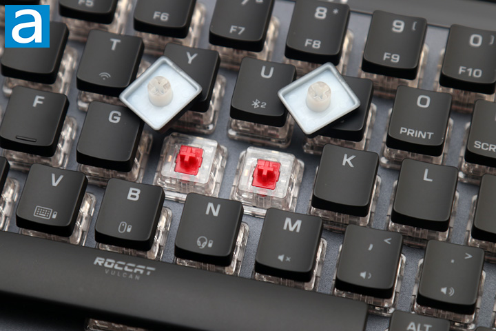 Our unit of the ROCCAT Vulcan II Mini Air features linear Titan II Optical switches. This features linear travel with a relatively light pressure required to push the switch. Since the actuation is not a mechanical action, but via light, these switches are rated to last 150 million keystrokes. According to ROCCAT, this switch has an initial actuation distance of 1.4mm and an overall travel distance of 3.6mm. The switch actuates at around 45g of force. This makes it notably lighter than some typical Cherry switches. Longer keys like the space bar and Enter have Cherry stabilizers to prevent them from wobbling about.