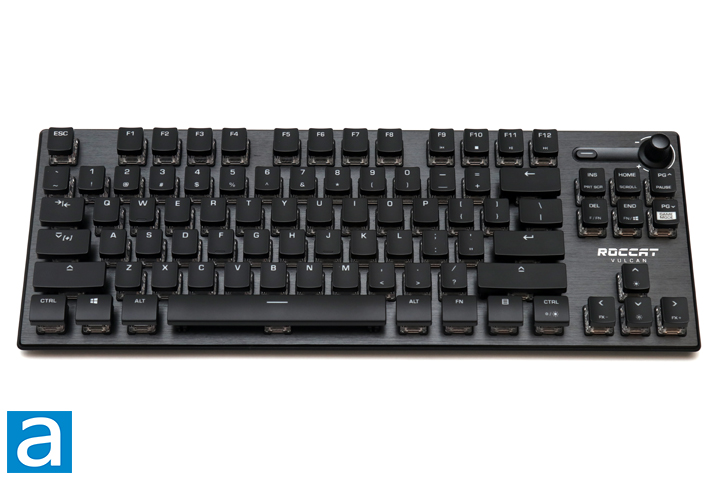 It has been a while since I have last looked at a tenkeyless keyboard, dating back to early 2019 when I reviewed the Cooler Master MK730. However, I can also say I have only used tenkeyless keyboards since then, alternating between the MK730 and the Cooler Master Storm NovaTouch TKL. I do like a more compact keyboard because I rarely use the number pad, and the smaller size means I do not need to reach out as much when I grab my mouse. With respect to the ROCCAT Vulcan TKL Pro, you can see even though it does have quite a few less keys than other ROCCAT Vulcan keyboards we have reviewed, the 121 AIMO and 120 AIMO. Even so, you can clearly see the similar design language for all three of these keyboards. The first thing I notice about all of these keyboards is the brushed metal backplate and the very shallow keycaps. These island-style keyboards also expose the clear housing on the key switches. The brushed aluminum backplate is generally well finished to hide finger prints. Otherwise, the sides and bottom are made out of plastic. As for the TKL Pro model we have today, this comes in an all-black finish on both the metal backplate and the keycaps.