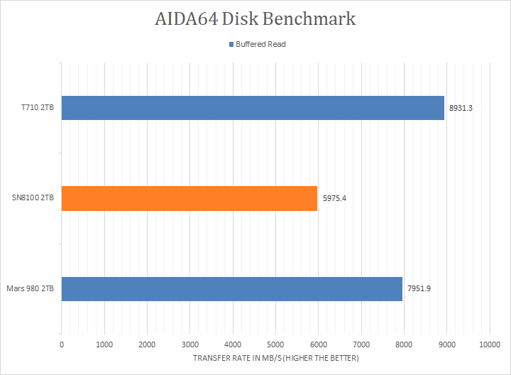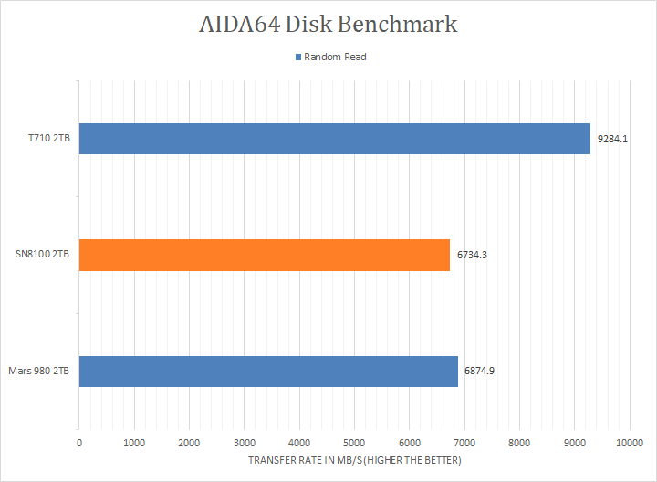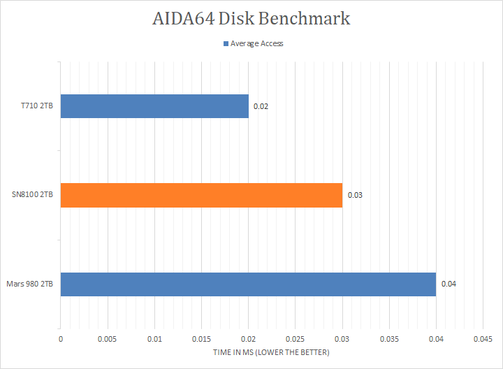 As you can see in our graphs above, the Sandisk WD_BLACK SN8100 2TB and Crucial T710 2TB scored consistently around the 8500MB/s mark in the linear read segment, putting it about 1GB/s ahead of the XPG Mars 980 Blade 2TB. In Buffered Read, the T710 came in first, while the SN8100 and Mars 980 were around the same ballpark. Surprisingly, the SN8100 came in last in the Buffered Read segment. The tested latency was very low with an average of 0.03ms. The comparison results for all the other drives can be seen in our graphs above.