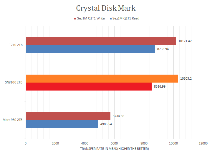 Sandisk claims the WD_BLACK SN8100 2TB's maximum read and maximum write are pinned at 14900MB/s and 14000MB/s, respectively. Looking at the linear read and write results, the tested numbers were pretty close compared to the advertised numbers. The PCIe 5.0 NVMe-based SN8100 2TB and T710 2TB were remarkably close to each other, but the Sandisk drive had a very slight edge. The XPG drive seemed to have issues catching up in the Seq1M Q1T1 sections. In the RND4K benchmarks, the SN8100 was the fastest drive of the three, with some margins higher than others. Overall, the SanDisk WD_BLACK SN8100 2TB was a strong performer even in the context of other flagship PCIe 5.0-based NVMe SSDs. I will let you make your own comparisons on our list of NVMe SSDs in the graphs above.