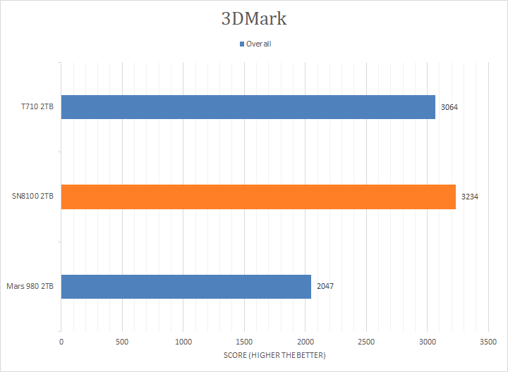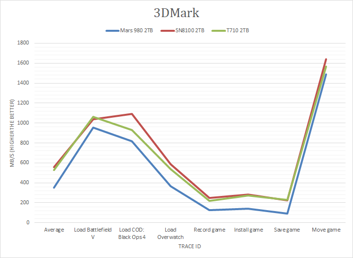 3DMark is the continuously updated version of the popular gaming benchmark from UL. We used 3DMark's Storage Benchmark to test the performance of the Sandisk WD_BLACK SN8100 2TB. According to UL, the Storage Benchmark uses traces recorded from popular games and gaming-related activities to measure real-world gaming performance. The following traces were used and defined as follows: