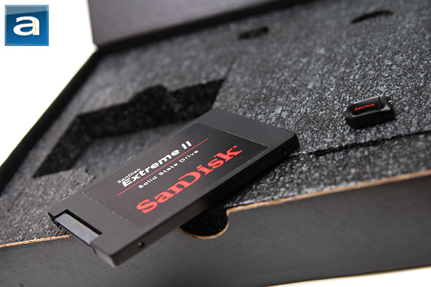 Since our review unit came in a press package, its out of the box contents differ from what you will get in a retail package. That said, rest be assured the performance of the SSD itself will still be the same, as it is equivalent to a production unit. We got a SanDisk Extreme II 240GB SSD, Cruzer Fit 4GB USB flash drive containing a reviewer's guide and pictures, as well as a printed reviewer's guide. What you can expect when you pick one up at the store depends on the variant you purchase. Like some Kingston SSDs we have reviewed in the past, if you are buying a desktop kit, it will come with a 2.5" to 3.5" bracket, SATA cable, and installation screws. If you are buying a laptop kit, it will come with a 7mm to 9.5mm shim, just like what we have seen packaged with the SanDisk Ultra Plus 256GB we have reviewed back in February.