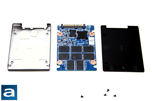 The SanDisk Extreme PRO 480GB's shell is attached to the backplate by four small screws behind the label. None of the screws has a warranty seal over it, so you are probably able to get away with opening up the drive without voiding anything. Please do not quote me on it though. Personally, I would not put the lengthy ten year warranty at risk. But not to worry. To save you some trouble, I cracked mine open to take some photos of its internals for you to see. Knowing the Extreme II, we have exactly what the doctor ordered once again: A full sized PCB inside. However, a closer look indicates while they are functionally very similar, the layout has been reworked. There are some of what appears to be thermal pads between the enclosure and flash ICs. The enclosure is plastic, which is not thermally conductive. On a second look, it is probably more to keep the PCB in place than anything else.