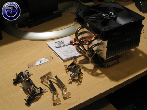Out of the box, you'll notice that the entire Andy Samurai Master package includes no screws -- the mounting accessories included consists of LGA775, Socket 478, Socket AM2, Socket 940, and Socket 939 simply clips onto the heatsink (We might be able to assume that it fits for Socket 754 as well, since I tried heatsinks for Socket 939 into a Socket 754 motherboard -- however, it might not fit due to placement of capacitors and other components that may get into the way of installation).