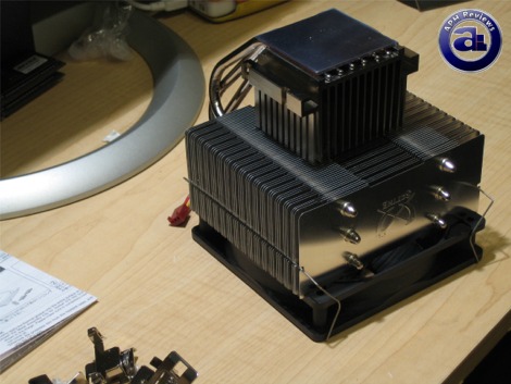 The Scythe Andy Samurai Master is entirely tool-free for this purpose -- two pieces of LGA775 mount accessories clips onto the heatsink itself securely and easily. Using Intel stock mounting holes, it's excellent news for all as you do not have to remove your motherboard to change the backplate in order to accommodate this heatsink.