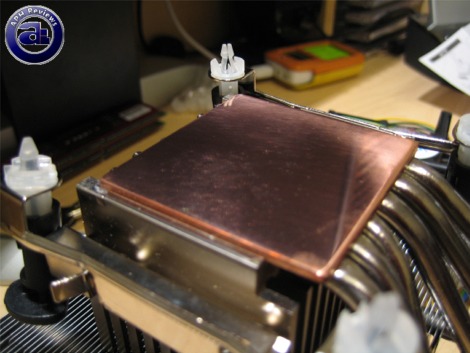 The base of the heatsink is copper. It's polished to a clean shine that's not depicted so well in the photo due to my camera's limitations, but it's definitely one of the best we've seen up until this point (Also slightly better than the base of our unit of Scythe's Infinity).