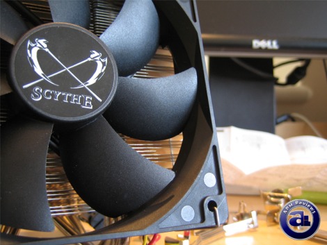 What's interesting about these figures is they lay at the roots of the fan RPM. Although the Scythe Andy Samurai Master remained 5-6 degrees Celsius lower than the stock Intel heatsink under both idle and load conditions, fan speed of Scythe Andy Samurai Master's 120mm fan is roughly half of Intel stock heatsink's fan speed. Lower fan speed translates to less noise, and the Scythe Andy Samurai Master -- using the same fan as the Infinity -- was spinning only slightly faster than the company's Infinity heatsink.