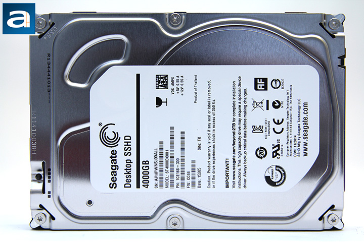 As always, with our storage reviews, before we move on to the benchmark results, let us briefly discuss the physical attributes of this hard disk drive first. The Desktop SSHD ST4000DX001 is your quintessential 3.5" hard drive from Seagate; all you have at the top is bare metal with a dull silver finish, and a large label placed across the middle. If you have owned a Seagate drive in the past before, this one is no different. It weighs in at 610g each, or about 1.35lbs. On the label, you will also spot information like its 4000GB drive capacity, model name, serial number, model number, part number, firmware revision, manufacturing date, SATA interface logo, and that it is a product of Thailand. The Seagate Desktop SSHD comes with a three year limited warranty.