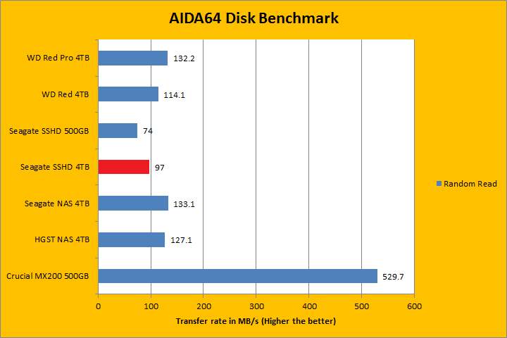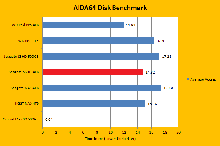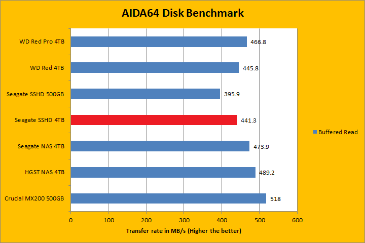 Since our storage review benchmark results are presented in alphabetical order, first up on the list are results from one of our favorite benchmarking programs, AIDA64 Engineer. Just to note, AIDA64 Engineer is a full synthetic benchmark. Unlike full synthetic motor oil, this usually does not always carry a good connotation. While it is not a representation of real life performance (Such as how fast Photoshop opens), it does provide valuable insight into performance between different drives and different controllers, especially since we have a bunch of hard drives and one SSD to compare against our hybrid drive today. As you can see in our graphs above, the Seagate Desktop SSHD ST4000DX001 4TB was one of the fastest tested hard drives. I did multiple runs on it, and it did not make a difference, so I kept them as one set of results. In the Linear Read section, the Desktop SSHD started off at 175.2MB/s, went down to 151.3MB/s in the middle, and closed off at 80.2MB/s in the end. This was remarkably close to the 7,200RPM Western Digital Red Pro 4TB, and was consistently better than Seagate's own NAS HDD. For the rest of the charts, the 5,900RPM ST4000DX001 was much closer to being an HDD than SSD without caching, as expected. It outperformed the Seagate Laptop SSHD, but was beaten by the NAS HDD in both Random Read and Buffered Read. As far as average access time is concerned, the 14.82ms was a great result.