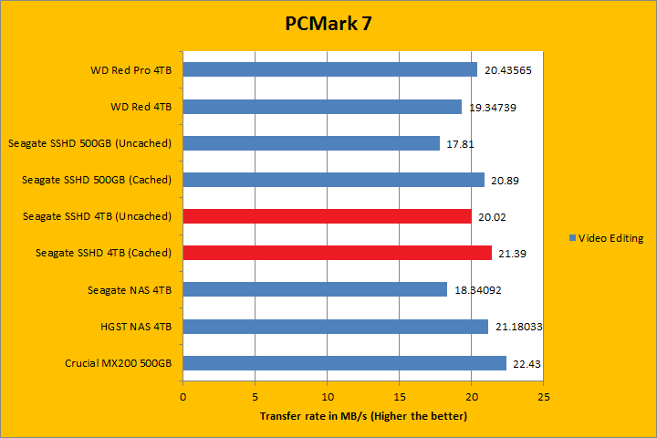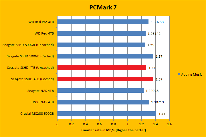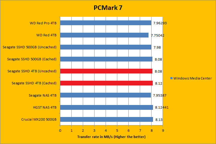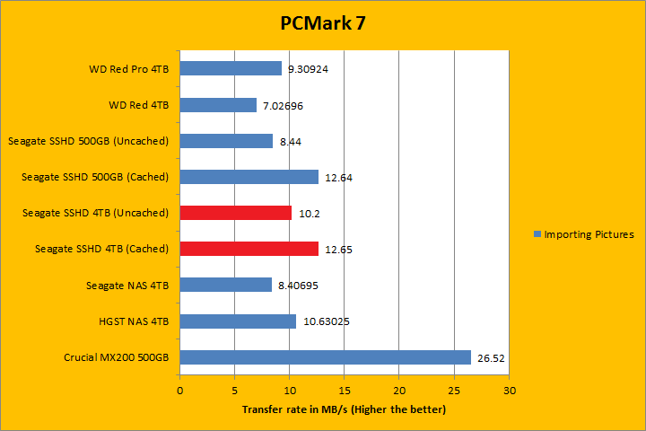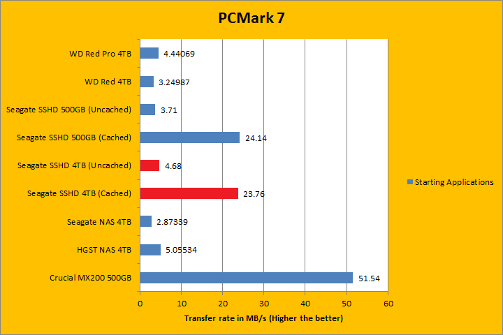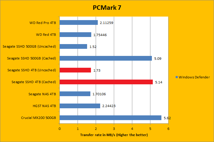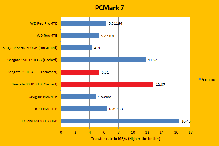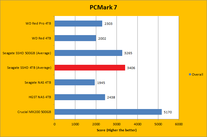 PCMark 7 aims to shed a little more insight into real life performance of your computer hardware by semi-synthetic means -- and all insight is good, right? The great thing about standardized tests is anyone can repeat them and get very similar results, given identical hardware. PCMark 7 is a Windows desktop environment based test, which is exactly what we are after. Also, we can see some caching going on between iterations, which allowed us to see what kind of boost the Seagate Desktop SSHD ST4000DX001 4TB's 8GB of NAND flash brings to the table. Well, I am not going to narrate the stuff above in detail, because we all know graphs are there for a very good reason. As you can see in our results above, the ST4000DX001 was pretty good uncached compared to other desktop drives. However, we saw some huge leaps in performance when the caching kicked in for Windows Defender, Starting Applications, and Gaming results in subsequent iterations. The boost results were not quite SSD level, but it was big enough the Desktop SSHD outperformed the 7,200RPM desktop drives by a quite significant margin in a number of tests. This performance signature was exactly the same as the Seagate Laptop SSHD, but at a slightly higher magnitude.